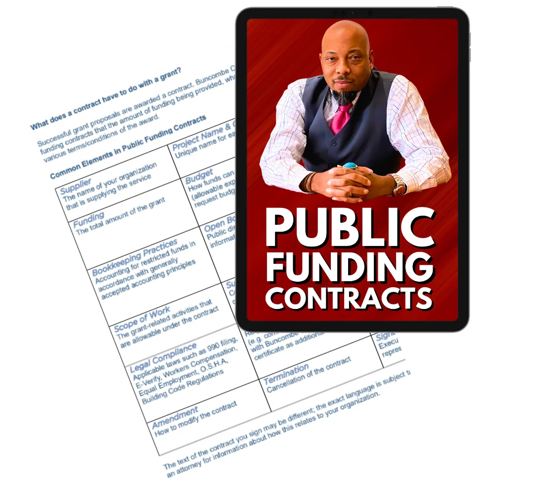 A comprehensive list of common elements your organization needs in place to comply with public funding requirements, covering grants and contracts with city, county, state, or federal agencies.